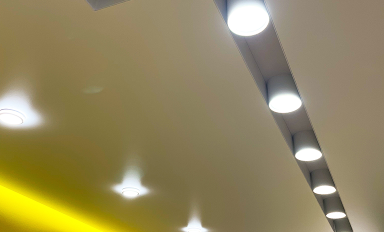 Потолок со световыми линиями и трековой системой