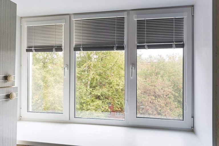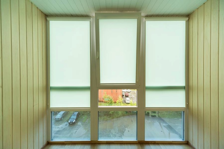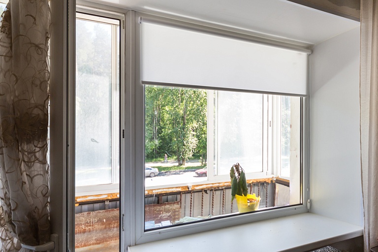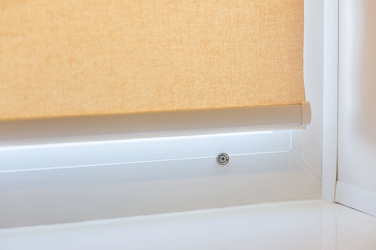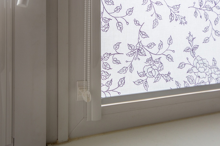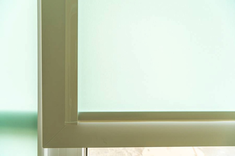 Рулонные шторы UNI-1 - Установка системы UNI-1 осуществляется максимально плотно к стеклу, а наличие направляющих обеспечивает удержание ткани рулонных штор параллельно створки откидного окна и исключает проникновение света по краям ткани в закрытом состоянии штор.