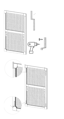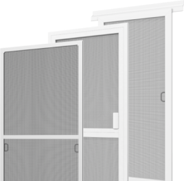 Для балконной двери сетка устанавливается в дверной проем. Крепится на дверные шарниры, содержит два ребра жесткости посередине, а также ручку и магниты для фиксации двери в закрытом положении.