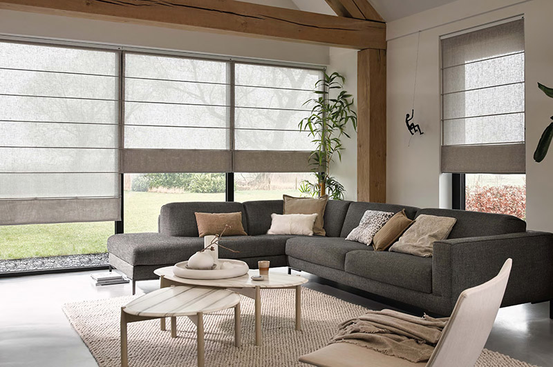 Римские шторы возможно закрепить на потолке, на стене, в проеме или нише, даже на отапливаемой лоджии. В развёрнутом виде римская штора представляет собой ровное полотно. При подъёме с помощью цепочного механизма или электропривода ткань компактно собирается каскадом горизонтальных складок, которые накладываются друг на друга.