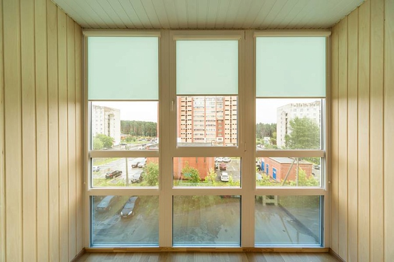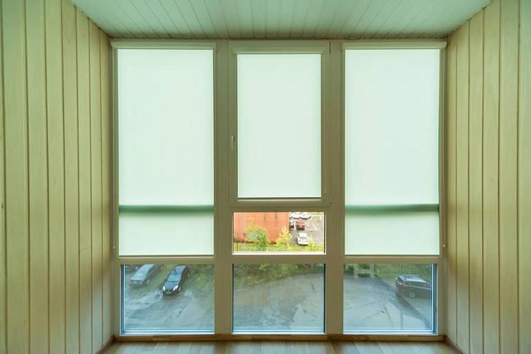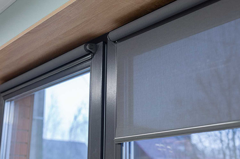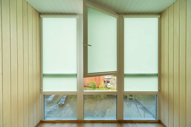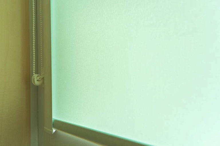 Рулонные шторы UNI-1 - Установка системы UNI-1 осуществляется максимально плотно к стеклу, а наличие направляющих обеспечивает удержание ткани рулонных штор параллельно створки откидного окна и исключает проникновение света по краям ткани в закрытом состоянии штор.